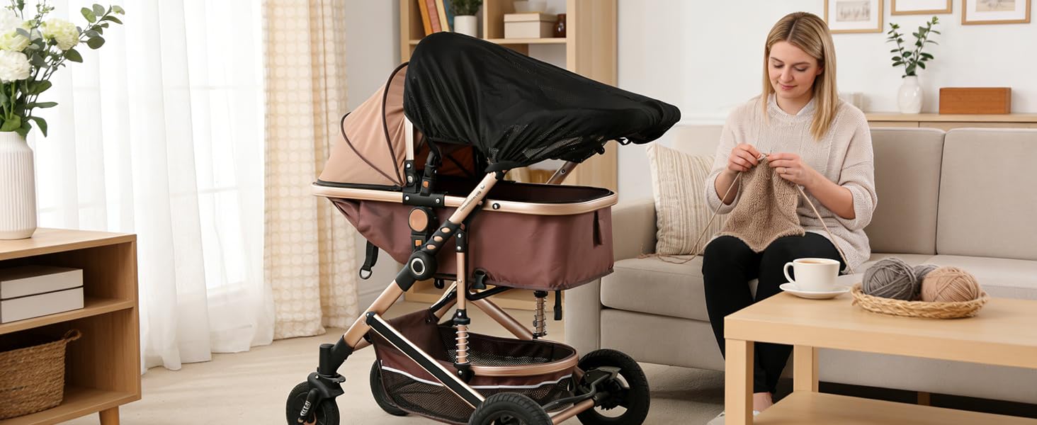 Pram and Stroller Sun Shade Cover Blocks UV UPF50+ Baby Sleep Aid and Breathable