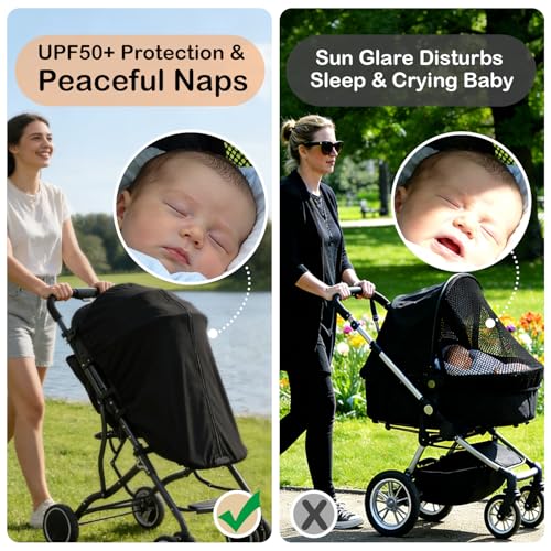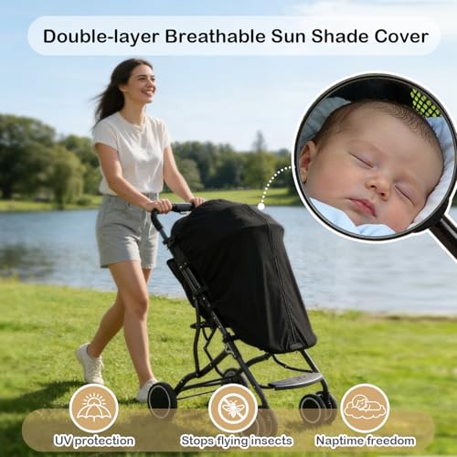 - Blocks 99% UV for Naptime Freedom: Boasts UPF50+ sun protection and doubles layers as a breathable mosquito net for strollers. It shields your baby from sunlight, wind, light rain and insects, while having a peaceful, free naptime and also allowing them to fully enjoy the view along the way, performing far better than ordinary parasols or loose mosquito nets.