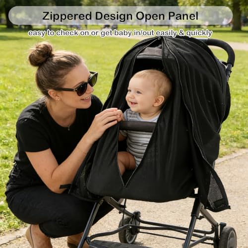 - Flexible Opening & Closing: Zippered design allows for quick adjustment of the shading area, making it easy to check on or get your baby in/out easily & quickly.