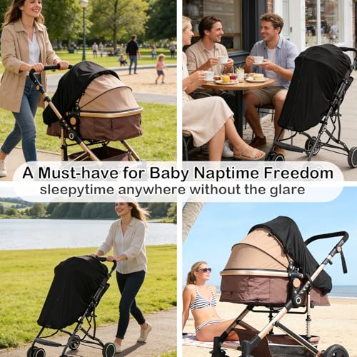 - Stain-Resistant & Durable: Classic black finish hides daily stains effectively, maintaining a clean look for long-term use. Our Universal Pram Sun Shade is machine washable, quick-drying. A Must-have for Baby Naptime Freedom, enjoying sleepy time anywhere without the glare.