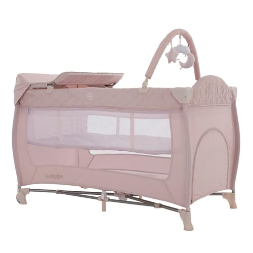 Puggle Easy Fold Luxe 3-in-1 Travel Cot, Playpen & Changer – Plush Pink