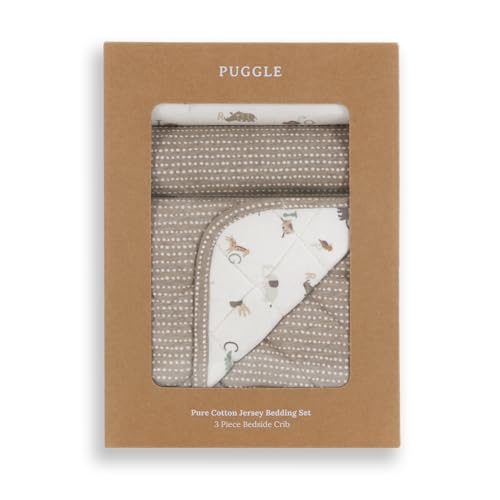 - The perfect gift:Ideal for baby showers, welcoming a new arrival, or thoughtful everyday gifting, the Puggle Wild At Heart 3-Piece Pure Cotton Jersey Bedside Crib Bedding Set is beautifully presented and made to be cherished.