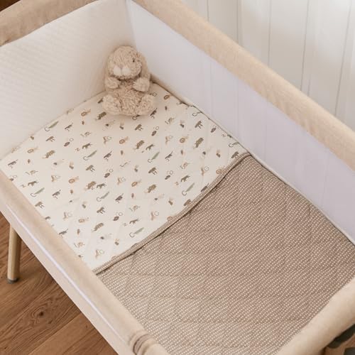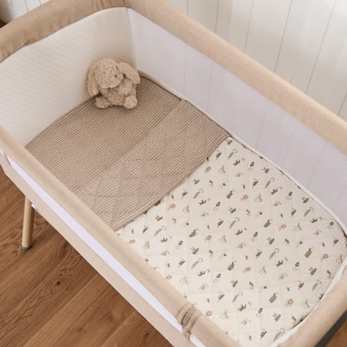 - Premium comfort:Crafted from 100% premium 180gsm cotton jersey, the naturally stretchy fitted sheets ensure a snug, secure fit on standard bedside cribs. The reversible 2.5 tog quilted coverlet delivers cosy yet breathable comfort, making it suitable for all seasons.