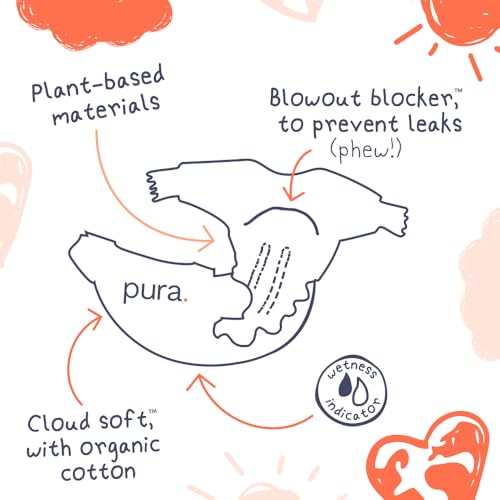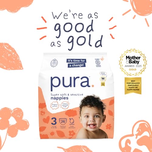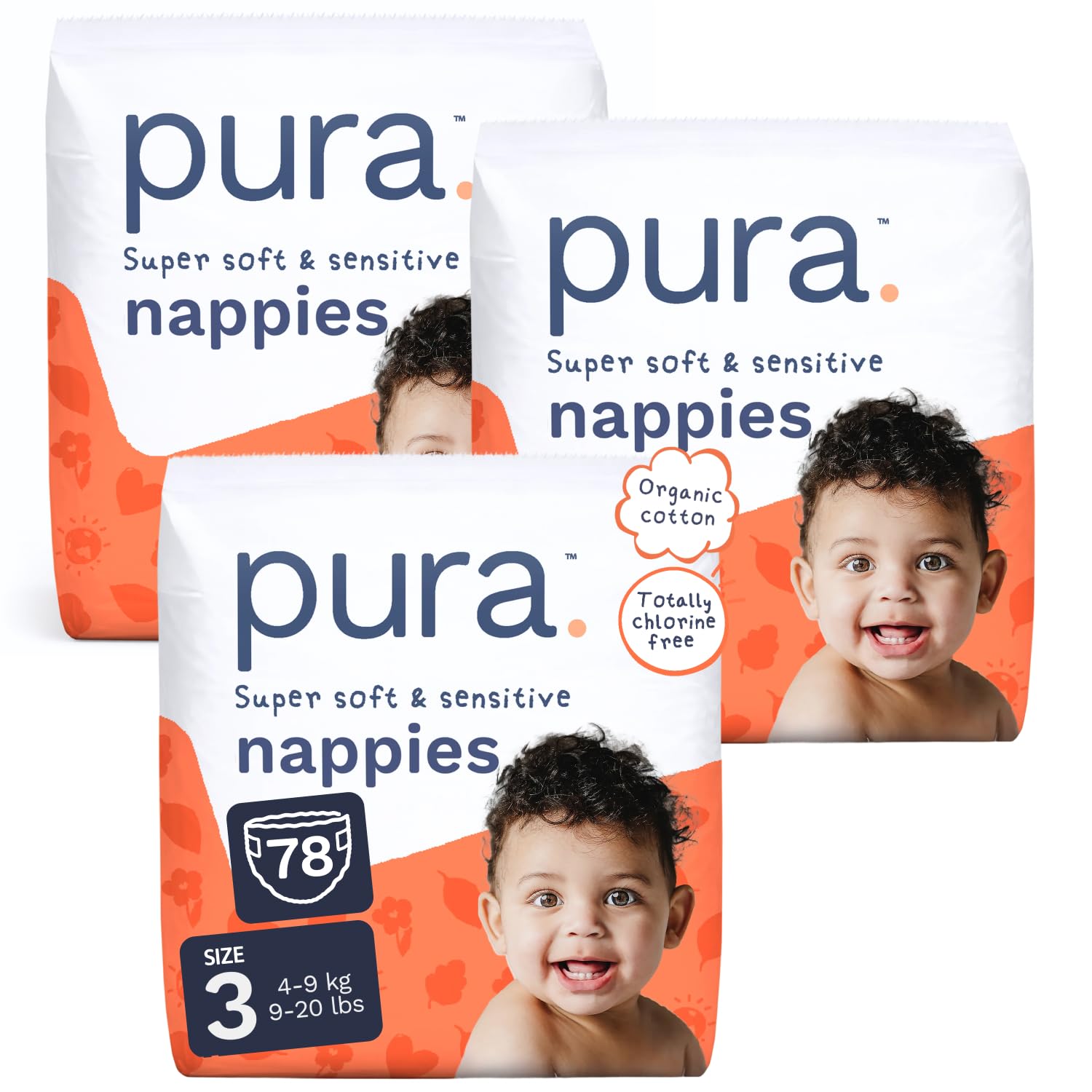 Pura Baby Nappies Size 3, 78 Count, 4-9kg/9-20 lbs, Cloud Soft Premium Nappies for Hypoallergenic & Sensitive Skin, Toxin-Free*, Blowout Blocker™, Up to 12 Hours Leak Protectio