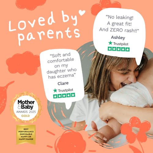 These disposable nappies feature a super-absorbent core with stay-dry channels that quickly lock moisture away from delicate skin. A breathable, top layer made with plant-based materials promotes airflow to help reduce irritation and support healthy skin, helping to protect against nappy rash – perfect baby essentials.