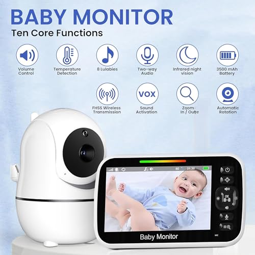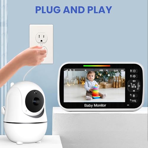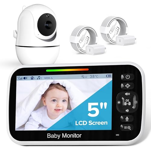 RFAQK Non Wifi Baby Monitor With Camera And Night Vision, 5 Inch Large Screen
