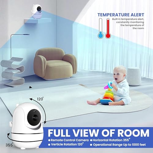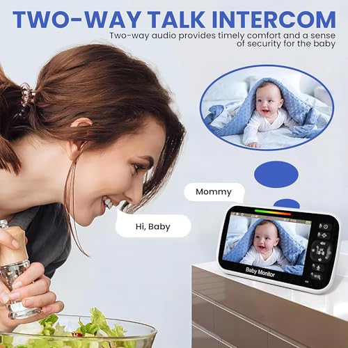 RFAQK Non Wifi Baby Monitor With Camera And Night Vision, 5 Inch Large Screen with 3000mAh Battery & Upto 1000 feet Range, 4x Zoom, 2 Way Talkback with Crying Detection & Temperature Sensors