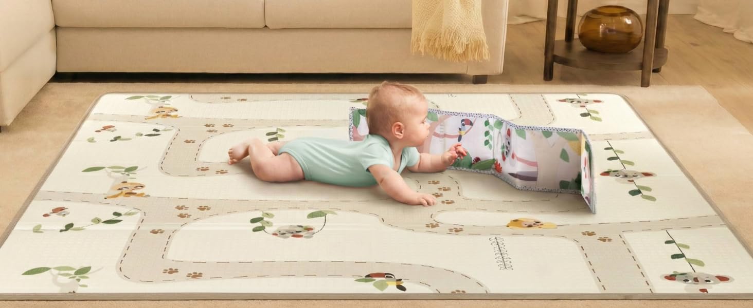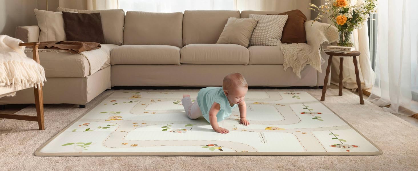 With its extra-large size and comfortable thickness, the mat gives babies plenty of room to move, practicing tummy time, rolling, crawling on the way to their next milestone.