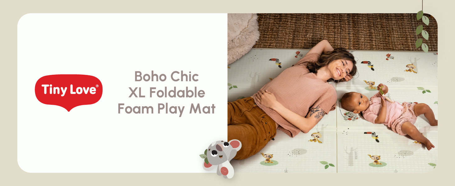 Tiny Love XL Foldable Foam Play Mat, Baby Playmat, 0+ Months, Double Sided, Lightweight & Foldable Play Mat, 150 x 150cm, Soft & Thick (1 cm), Water-Resistant, Easy to Clean, Boho Chic