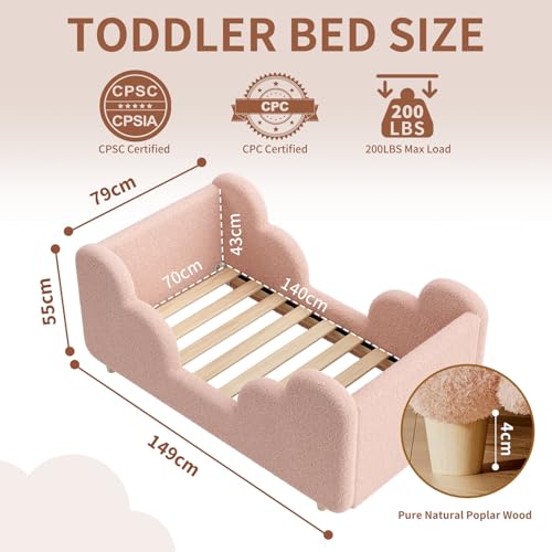 - Reinforced 10 Thickened Slats For Superior Durability: Built with 10 reinforced and thickened wooden slats, our toddler bed frame provides exceptional support and long-lasting durability, supporting up to 150 kg. The sturdy slat construction prevents sagging and squeaking over time, ensuring a stable and quiet sleep surface for active children — from playful daytime jumping to peaceful nighttime sleeping. Solid pine wood construction guarantees reliability for years to come