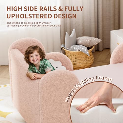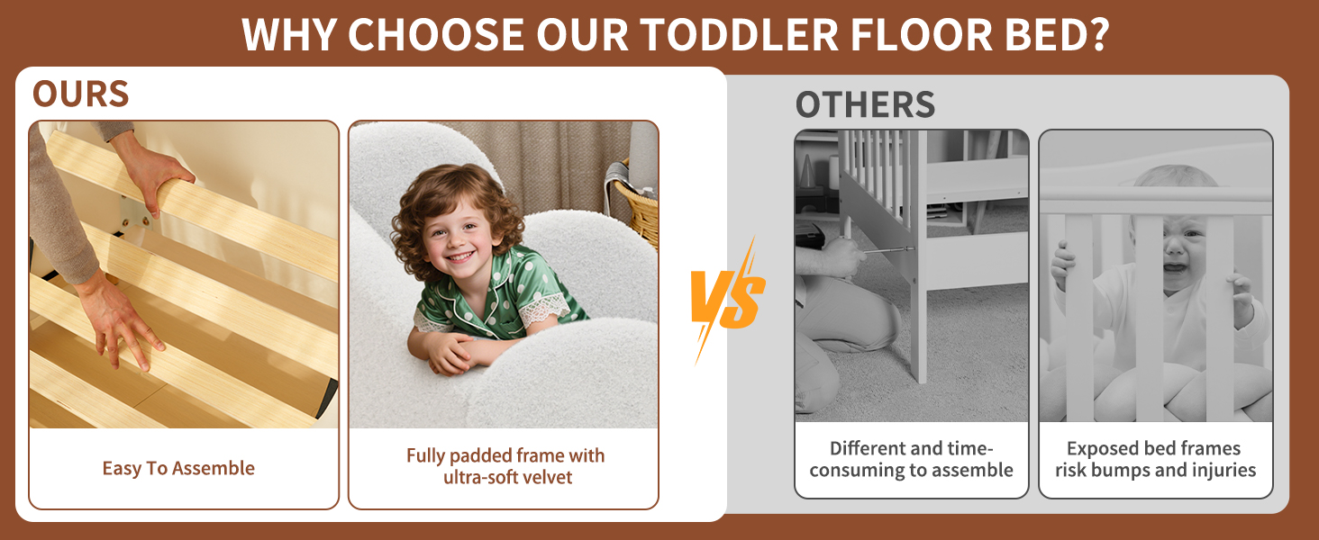 - Whole Soft Padded With Premium Velvet Fabric: Every edge and corner is wrapped with high-density sponge padding and covered with ultra-soft velvet fabric, creating a cozy, child-friendly sleeping environment. The soft-to-the-touch surface protects your little one’s delicate skin from scratches and bumps, whether they are actively playing on the bed or tossing and turning during sleep. The high-quality fabric is breathable and easy to clean, ensuring long-lasting comfort and hygiene