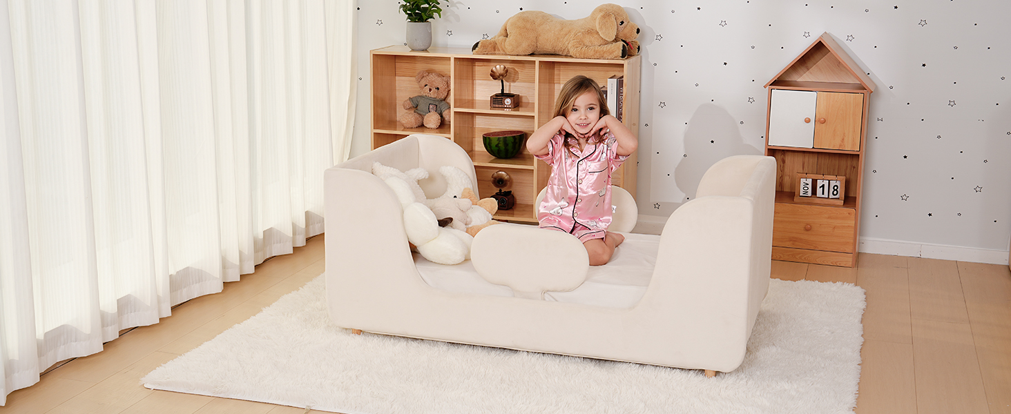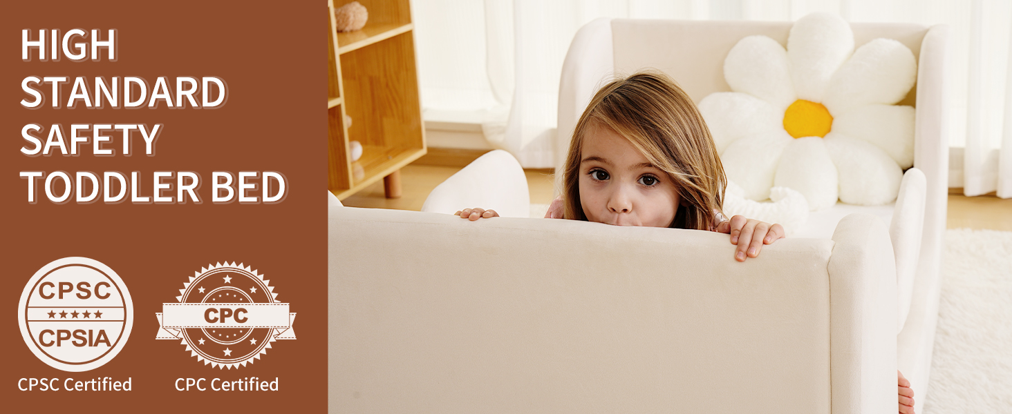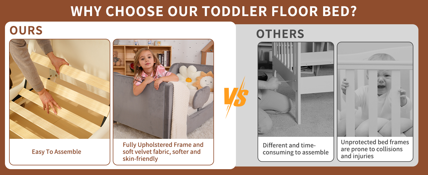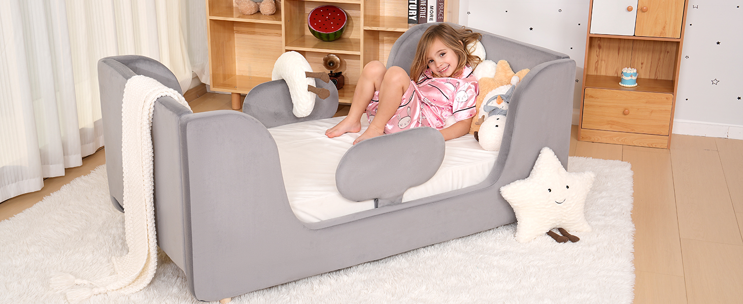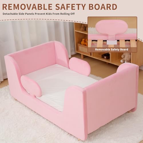 Toddler Bed, Whole Soft Padded Kids Beds with Extra Safety Guardrail, Low Frame