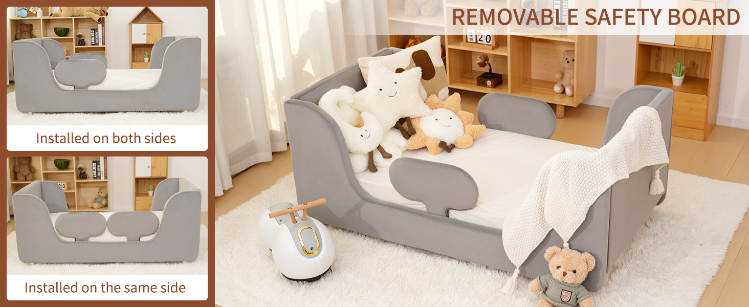- Detachable Safety Guardrail For Peace Of Mind: Features a removable safety guardrail that can be installed on either side of the bed or positioned closer to the headboard to effectively prevent your child from rolling off during sleep. As your child grows older and gains confidence, the guardrail can be easily removed according to your needs—offering flexibility that adapts to every stage