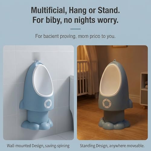 - Flexible Hanging & Standing Use: Supports wall mounting to save space and can be easily moved as a standing urinal for use anywhere, enhancing convenience for night training.