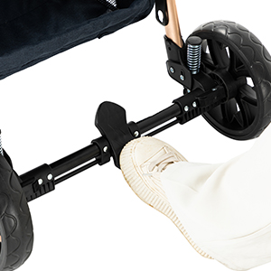 - Excellent stability and shock absorption: Both the frame and wheels feature spring suspension, along with a bassinet locking mechanism, ensuring smooth pushing even on bumpy roads for a more comfortable ride for baby.