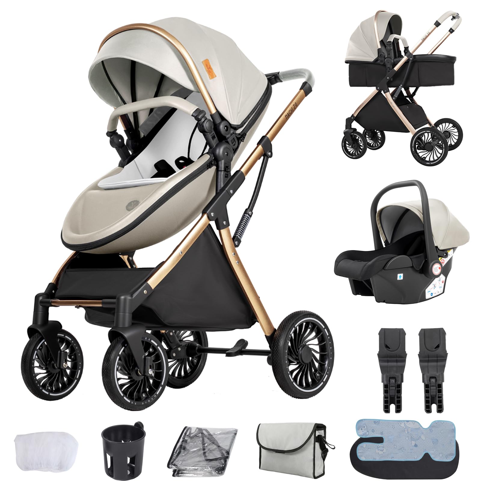 Travel System 3 in 1, from Newborn to Toddler, All-Terrain, One-Hand Fold, High-seat Baby Stroller, Convertible Pram