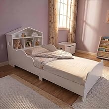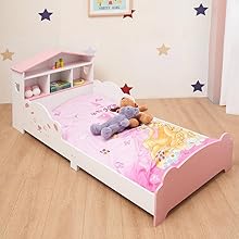 URBNLIVING Wooden Toddler Bed with Integrated Bookshelf Storage – Junior Kids