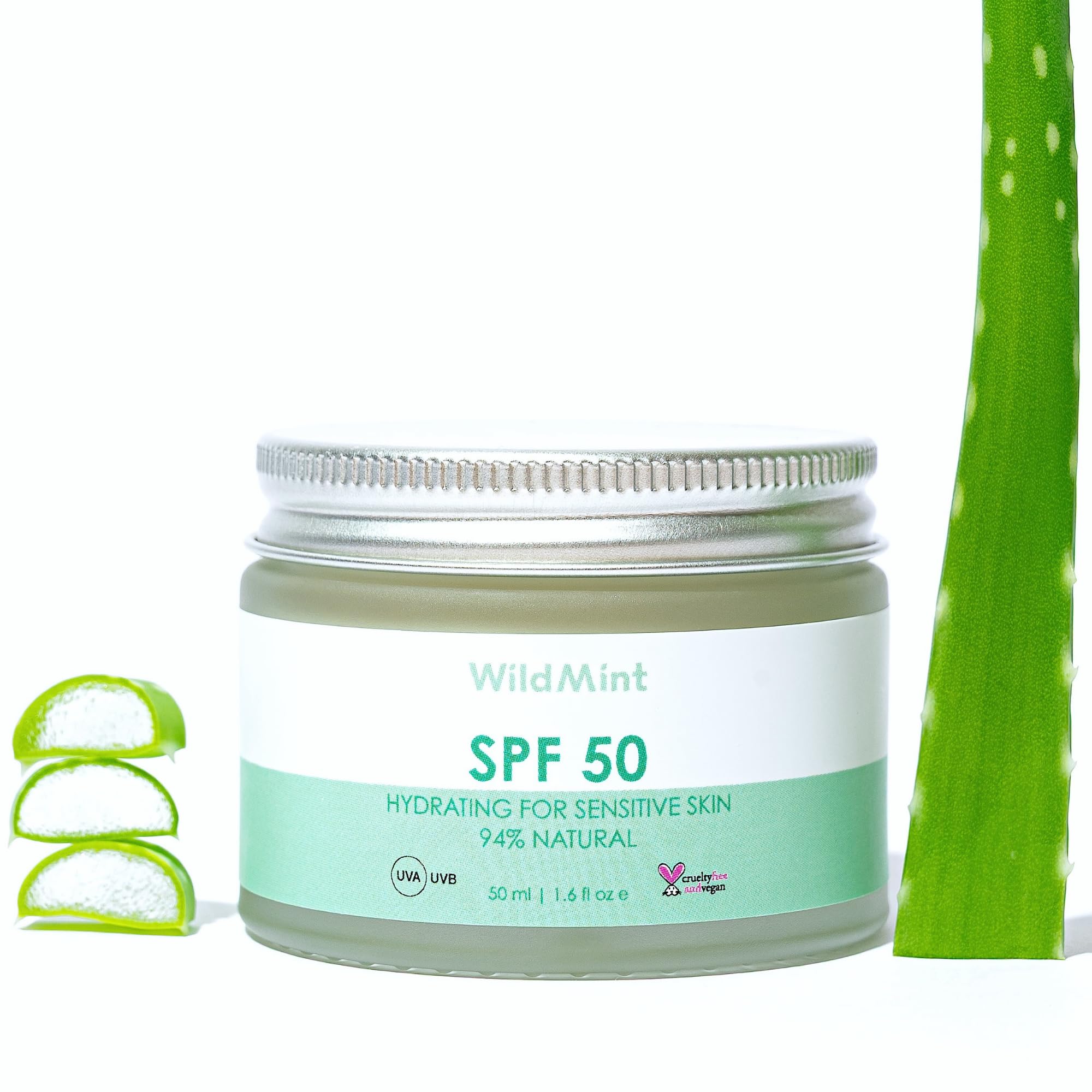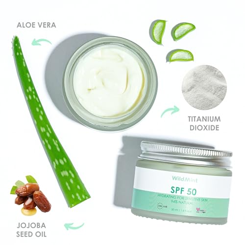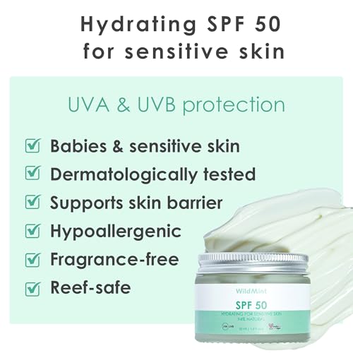 WildMint SPF 50 Face Sunscreen for Baby & Sensitive Skin | Hybrid Sun Cream with Titanium Dioxide | Broad Spectrum UVA & UVB High-Protection | Dermatologically Tested, Fragrance-Free & Hydrating 50ml
