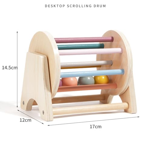 Wooden Rolling Drum Montessori Toy, Colorful Roller Wheel, Early Educational