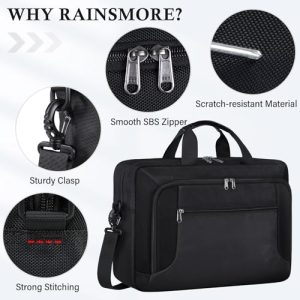 RAINSMORE 17.3-16 Inch Laptop Bag Briefcase Water-repellent Work Laptop Bags for Men Large Laptop Messenger Shoulder Computer Bag for Travel Office Document Teacher Black Durable & Excellent Quality: Our laptop bags are crafted from high-quality polyester fabric and metal fittings, providing you with confidence in its durability. Sturdy and robust fittings are essential!!! (including zippers and clasps) We use premium...