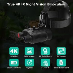 AKADE Night Vision Goggles, 4K Infrared Night Vision Binoculars for Adults with 32GB TF Card & 5x Zoom & Anti-Shake Motion Detection for Surveillance Tactical Gear, Night Vision Scope Military ENJOY 4K ULTRA HD VIDEO and 36MP IMAGES: AKADE binocular night vision device delivers exceptional 4K Ultra HD video and 36MP photos, simply rotate focusing gear to obtain a clear...