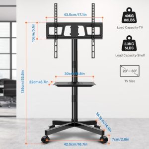 KKTONER Mobile TV Cart for 23 to 60-inch LCD LED Flat Screen/Curved TVs Floor TV Stand on Wheels with Height Adjustable Shelf Max VESA 400x400mm Rolling Floor TV Trolley Holds up to 40KG Universal Rolling TV Stand:This mobile TV stand fits most 23-60 inch flat or curved TVs, Compatible VESA holes is 400×400/400×300/400×200/300×300/300×200/200×200/200×100/100×100/75×75/50x50mm,it hold up to 40kg Height Adjustable TV...