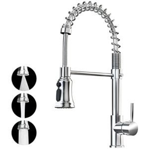 DAYONE Chrome Pull Out Kitchen Sink Mixer Tap, Stainless Steel Single Handle Taps Mixer for 1 Hole Kitchen Sink, 360°Swivel High Arc 3 Spray Mode Kitchen Fauce High Quality DAYONE kitchen tap is made of high quality and extremely corrosion resistant high grade stainless steel SUS304 (lead free and rust free), which can protect you from lead contamination in drinking...