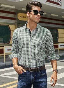 Elegancity Mens Dress Shirt Plaid Cotton Business Formal Shirts Regular-Fit
