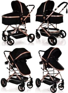 Baby Pram Pushchair Buggy with Car Seat Lightweight Stroller Folding Strollers 3 in1 Travel System Baby Trolley Baby Pram for Newborns Toddlers 0-36 Months (Black Gold) ✅LIMITED EDITION✅MULTIFUNCTION STROLLER : The infant stroller can be a toddler seat stroller. The sleeping bassinet can be adjusted into a seat position. Baby sits upright or semi-recline. The convertible stroller makes it possible...