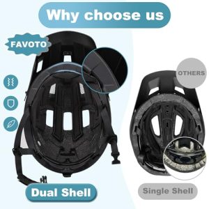 Favoto Mountain Bike Helmet Lightweight – MTB & Road Bicycle Helmet for Men Women – CE Certified Breathable Adjustable Cycling Helmet for Adults Youth Bicycle Helmet with Dual Shell Protection: CE (EN1078) and CPSC (1203) approved. The PC dual-shell integrated molding design enhances durability and provides superior impact protection. The high-density 20mm EPS foam effectively absorbs and disperses impact forces,...