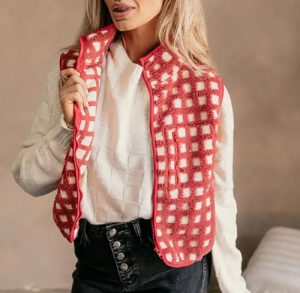 EEJBYTDI Women's Checkered Polar Fleece Vest Sleeveless Cardigan High Collared Zip Up Women's Checkered Sherpa Ves Check Offer Price Specifications:Name: Red Checkered VestStyle: CasualMaterial: PolyesterSize: S-XLColor: Red, Dark Green, Sky Blue Package includes:1 * Red Checkered Vest Womens Notes:1. Colors may vary due to different monitors.2. The side zipper on this product is purely decorative and does not lead to...