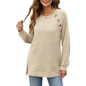 Odosalii Womens Tops Casual Striped Sweaters Crewneck Ribbed Long Sleeve Shirts