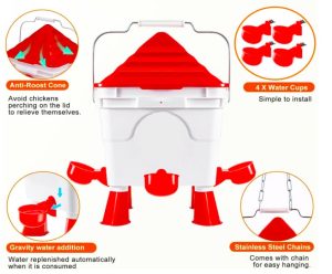 Riverwood Stores: 8.5L Litre & 6kg Kilo Large Chicken Poultry Bird Hen Feeder and Drinker Set House Coop Red Riverwood Stores: Updated high quality design. One of the best feeder/drinker sets available. Perfect for poultry e.g. chickens, bantams, pigeons, turkey, Quail etc. The drinker and feeder cups are gravity fed and automatically refill when the contents are consumed. The feeder...