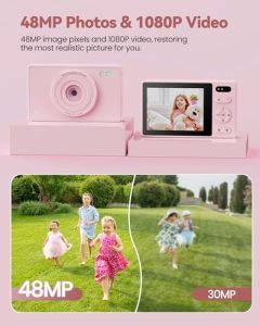 64GB Digital Camera for Kids Photography: 16X Zoom Compact Digital Camera Anti Shake 48MP Video Camera for Vlogging 2 Rechargeable Batteries Beginners Girls Boys Pink 【48MP Photos & 1080P Video】Refuse blurry pictures! Preserve the important moments! 2024 latest digital camera features a 2.4” IPS color screen that provides a clear view and quickly captures life's best moments. With a built-in...