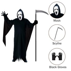 Kids Screamer Costume – Black Hooded Robe with Mask, Black Gloves & Plastic