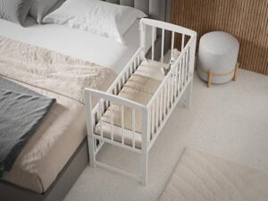 Wooden Co Sleeping Cot Dropside Next to You Space Saver Mini Cot in and White