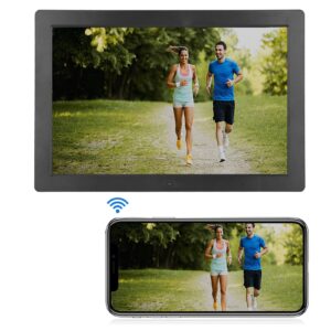 JEJA Digital Picture Frame, 10.1 Inch Electronic Picture Frame, Share Videos and Photos Instantly via Frameo App, Upload via WiFi Touchscreen, Automatic Swivel Stand or Wall Mou . . Photos and videos: You can upload photos or short videos via the app without a lifetime subscription fee. This digital photo frame has a variety of custom settings to suit your...