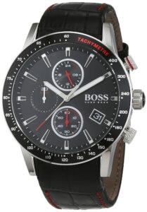 BOSS Analogue Quartz Watch for Men with Black Leather Strap – 1513369 2-hand Quartz Movement Case Diameter 40mm / Case thickness 6.1mm Black Sunray Dial Black leather strap Water Resistance: 3ATM Faucet spray or rain won’t hurt them as long as the case, crown and crystal remain intact. Check Offer Price Classic, yet modern slim case Box Contains Official box...