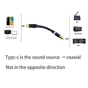 3ft USB c to coaxial Cable Male Type-c to Digital coaxial Audio Interface RCA Female Adapter Wire spdif for dac amp Sound Preamp Amplifier DSD64 dsd128 192K ★The type-c signal is decoded by dac to a coaxial signal of 77Ω ★The front section is 99.9999% OCC silver plated, the back section 75Ω coaxial cable ★24K gold plated connectors over 3μ,The...