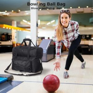 VEVOR Bowling Ball Bag, 2 Ball Double Roller Bowling Bag with Wheels, Featuring a Separate Compartment for Shoes (Up To US Size 16) & Oversized Accessory Pocket, Retractable Handle Extends to 41.32 i Large Capacity: This bowling ball bag's main compartment securely holds 2 standard balls, with a separate shoe compartment and an accessories section. The top mesh pocket allows...