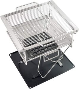 Super Grills Stinless Steel Foldable Portable Charcoal barbecue BBQ Grill Camping Picinics Outdoor comes with cove The outdoor camping fire pit BBQ Grill is made of 430 stainless steel, which is high temperature resistant, rust-proof, scratch-resistant, corrosion-resistant, non-toxic and durable.The grill gate made of 304 stainless steel has a non-stick surface for easy cleaning.The perfect gap size ensures even heat...